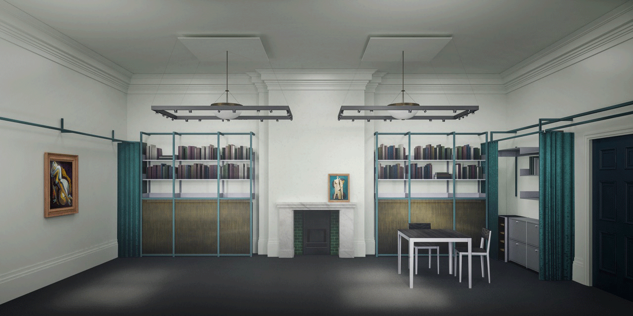 Matthew Stephenson's Somerset Studio is an art gallery, an office with library and an art storage space, all in a 32 SQM space in a grade A Georgian building, smack in the center of London. Inspiration was found in the world of the performing arts. Here is a room that changes like the weather.